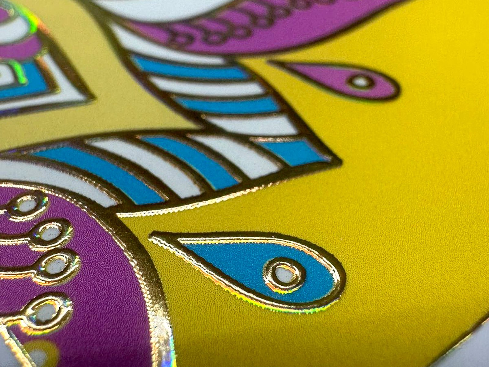 Um acabamento sofisticado que traz efeitos metálicos exclusivos, agregando valor e impacto visual em embalagens, convites e materiais promocionais.